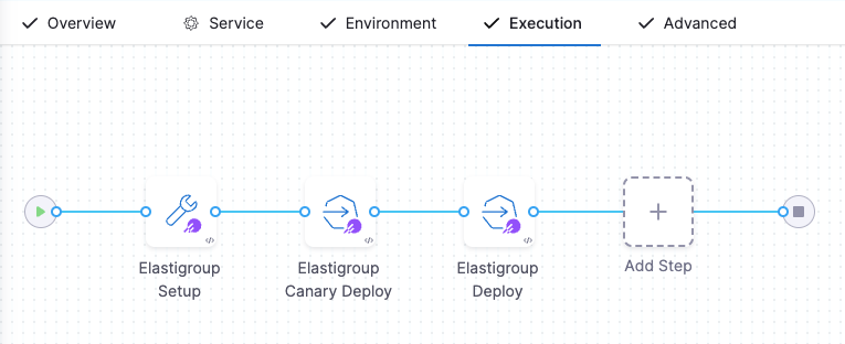 - Spot Elastigroup deployments support only Basic, Canary, and Blue Green execution types.