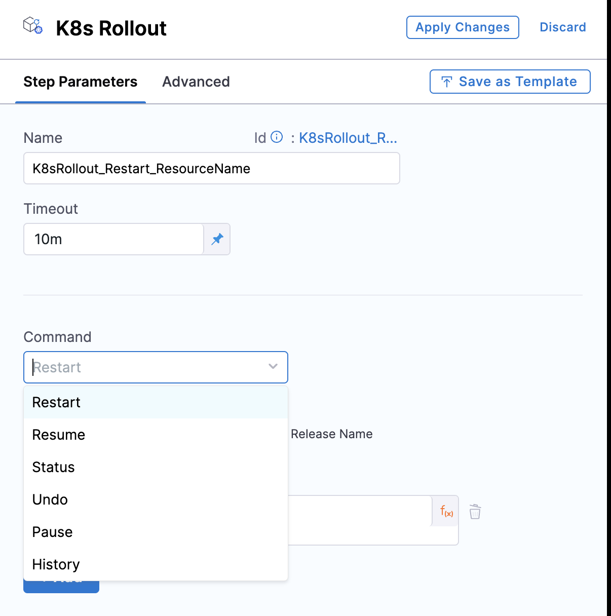 This step provides various commands like Restart, Resume, Status, Undo, Pause and History on top of basic Kubernetes rollout command.