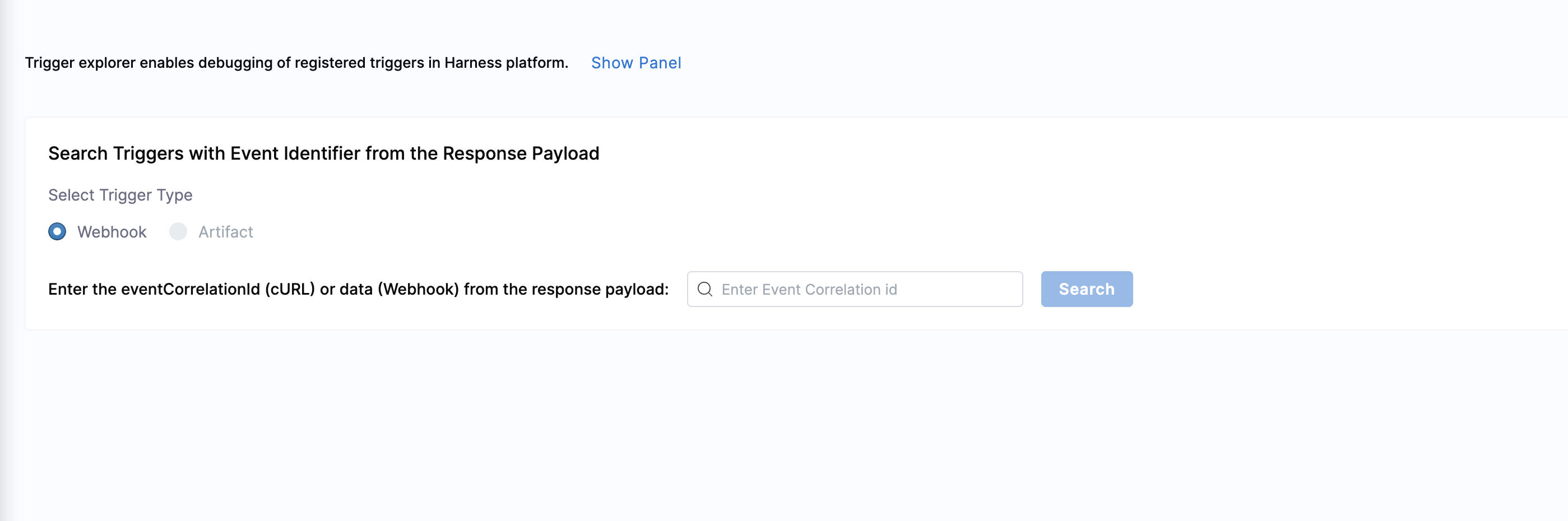 After a trigger runs, you can use the Trigger Explorer to troubleshoot cURL or webhook initiated failures. For cURL, you enter the eventCorrelationId